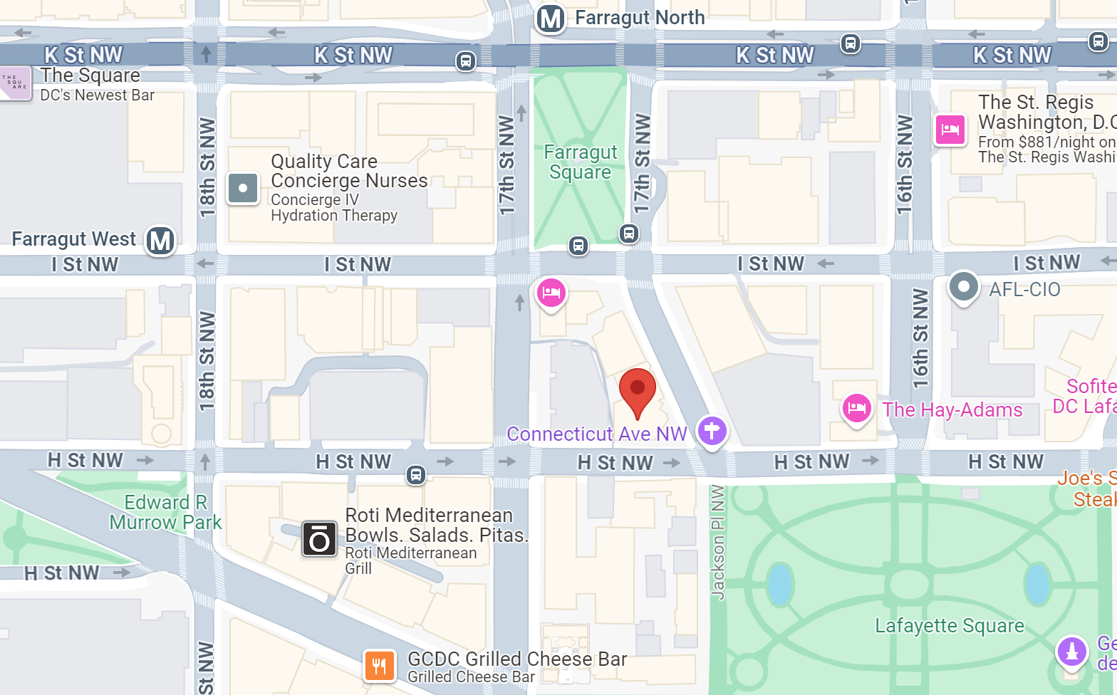 4. Turn right on H Street and walk West 2 blocks to Connecticut Avenue (do not cross Connecticut).